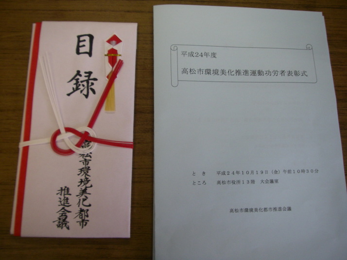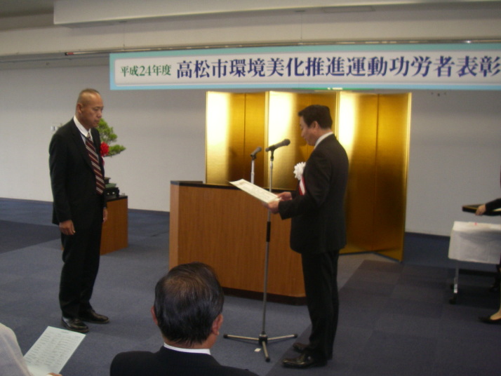 高松市環境美化推進運動功労企業として表彰されました Tweet 高松市環境美化推進運動功労企業として表彰されました 2012年10月19日 前 たかまつマイロード作業を行いました 最近 県道高松牟礼線 道路維持修繕工事